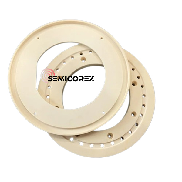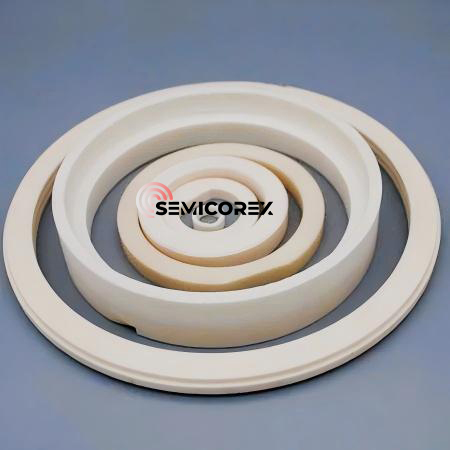 Алюминий тотығын оқшаулау сақинасы жартылай өткізгіштер секторында фотолитография, иондарды имплантациялау және химиялық буларды тұндыру (CVD) үшін компоненттерді өндіру үшін қолданылады. Бұл ластануды болдырмау керек қолданбалар үшін қолайлы, себебі оның жоғары тазалығы және химиялық шабуылға төзімділігі.