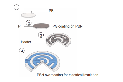Пиролитикалық бор Нитрид-пиролитикалық графит (PBN-PG) композициялық жылытқыш - бұл субстрат ретінде PBN-ді қолданады және төмен қысыммен химиялық будың (CVD) химиялық будың тұндыруын (CVD) қолданады (10torr) және өткізгіш ПГ-ны жоғары температурада қолданады. Бұл композициялық жылытқыштың негізгі компоненттері - пиролитикалық бор нитриді (PBN) және пиролитикалық графит (PG). Оның коррозияға төзімділігі мен жоғары температураға төзімділігіне байланысты, негізінен жартылай өткізгіш субстрат үшін қолданылады (MBE, MOCVD, шашыратқыш жабын және т.б.); суперметрлік субстрат жылыту; үлгіні талдау кезінде жылыту үлгімен; электронды микроскоптың үлгілерін жылыту; металл жылыту; Металл булануы жылыту көзі және т.б.