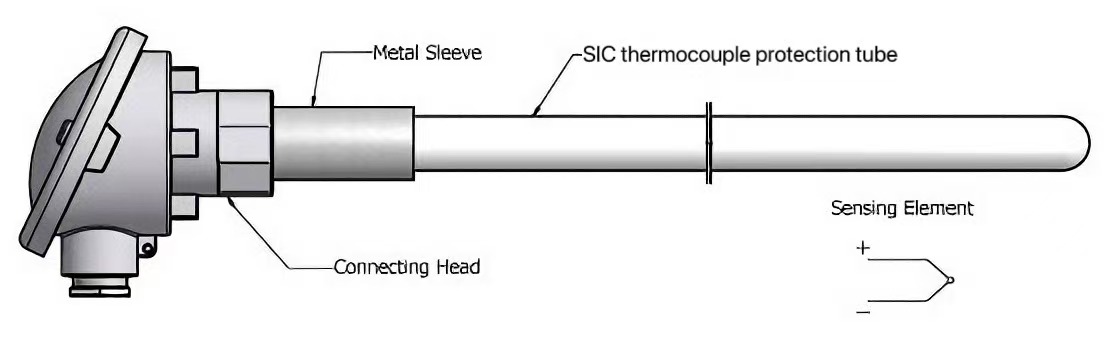 Термопара сенсорларына арналған қорғаныс қақпағы ретіндеСиріктіТермопара қорғау түтігі әдетте температура сезімін қосу үшін сенсордың сыртына орналасады. Олар термопараны жоғары температурадан, механикалық әсерден және коррозиялық материалдардан қорғай алады. Демек, SIC термопаратын қорғау түтіктері температураны сезіну элементінің зақымдану қаупін төмендетіп, термопара сенсорының температураның өзгеруіне сенімді және дәлдікті дәл өлшеуге кепілдік бере алады.