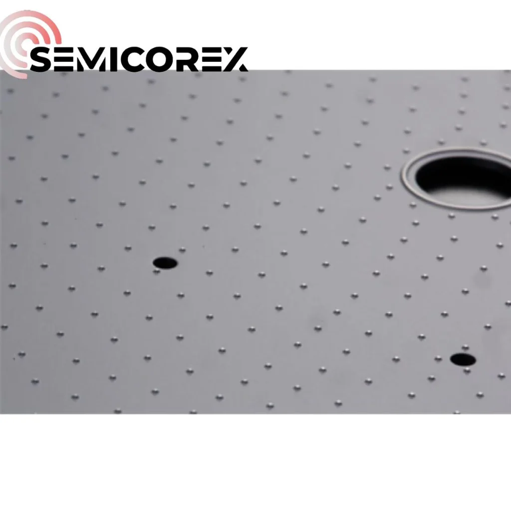 Semicorex кремний карбидті түйреуіш патрондары дәл өңдеуден және тегістеуден өтеді. Бетіндегі түйреуіштердің биіктігі, диаметрі және аралықтары қатаң бақыланады. Олар патронның 0,3–0,5 мкм тегістігіне қол жеткізе алады, бұл пластинаның оңтайлы тегістігін қамтамасыз етеді және біркелкі емес жүктеме нәтижесінде пайда болатын пластинаның бұрмалануын немесе сынуын айтарлықтай жояды.